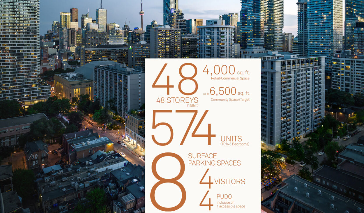 The new proposal will facilitate the development of a mixed-use building that contributes to the evolution of the Church-Wellesley Village by delivering a new community space for queer supportive programming, retail uses as well as much needed housing within close walking distance to two subway stations.